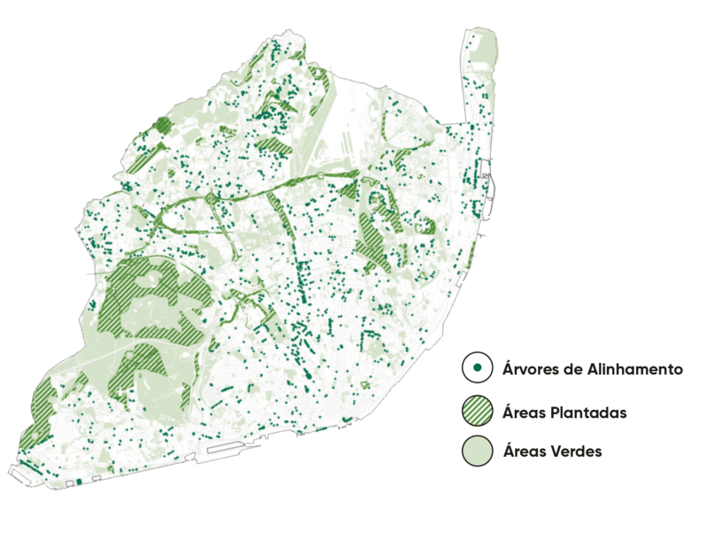 Aumento da densidade de cobertura arbórea ao longo da infraestrutura verde urbana de Lisboa