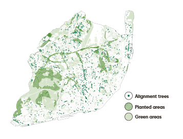green spaces were reinforced and expanded, including greener and